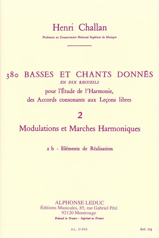 380 BASSES ET CHANTS DONNES VOL 2B ELEMENTS DE REALISATION