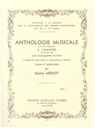 ANTHOLOGIE MUSICALE A CHANTER CLE DE SOL AVEC ACCOMP. PIANO VOL 1